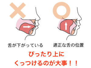 リラックスした状態では、舌は上あごのスポットについていて、口唇は閉じているのが理想的です。